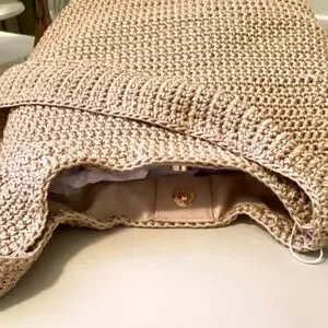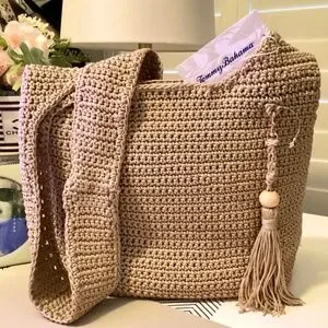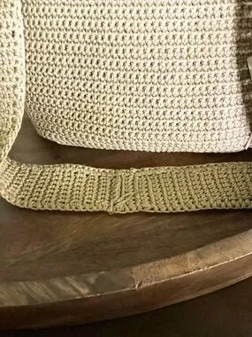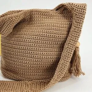 Perfect for sunny days and beach getaways, this purse captures the essence of relaxed, bohemian style. Meticulously hand-crocheted from a natural tan raffia, it features a beautiful, tight-knit texture that is both durable and chic. The roomy, bucket-style interior offers ample space for all your daily essentials, while the wide, comfortable shoulder strap ensures easy carrying from the farmer's market to a seaside brunch.