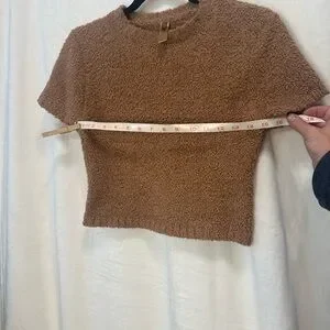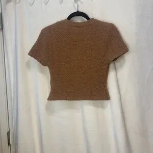 Soft and stylish cozy crop top. Perfect for a rainy day by the fire place 🔥 or stay warm and super cute with jeans! I'm not sure exactly which "brown" this is but I'm still looking! This top is SO soft! Very good used condition. No flaws. Also very stretchy!
