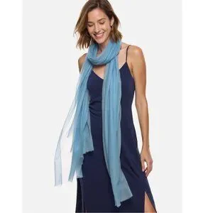 NWOT Cashmere Scarf Wrap Featherweight Tissue Weight Periwinkle Blue Ovcio