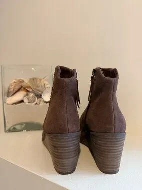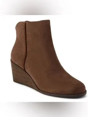 Elevate your style with the Joanna wedge bootie from Toms. Suede upper and contrasting stacked wedge bring the attention to this zipper bootie. Its Custom CloudBound foam footbed made with 40% eco content ensures all-day comfort, while encouraging sustainable wear.