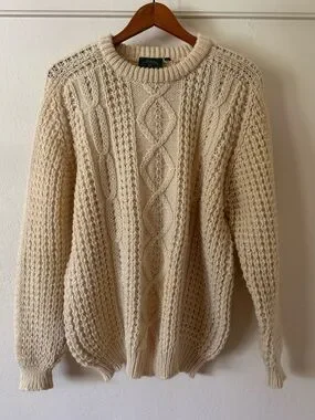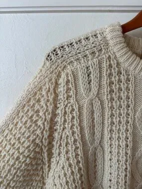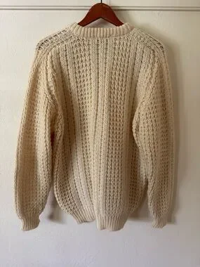 Vtg Gaeltarra Handcrafted Ireland Cable-Knit Crewneck Fisherman Sweater Cream 42