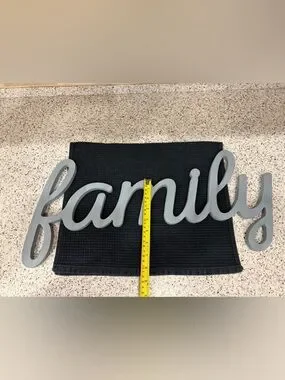 The Family Sign is a charming farmhouse country decor piece that features the written word "family" in eggshell color. Made of wood with a distressed finish, this shabby chic sign adds a warm and rustic touch to any room in your home. The 3D effect and hanging feature make it a unique and eye-catching statement piece that celebrates the theme of family in a farmhouse country style. A19