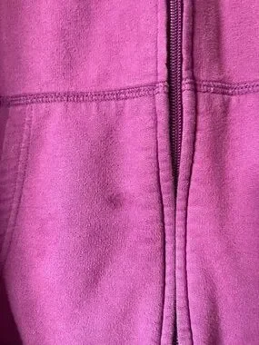 Disney-branded plum hoodie with full front zipper. Soft fleece-lined interior. Subtle character detail at chest. Comfortable casual layer for everyday wear.