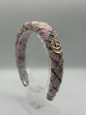 Padded Pink Multicolor Tweed Headband with Gold Accent