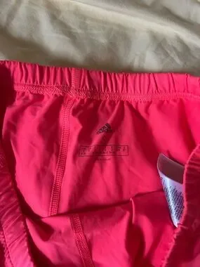 adidas sleeveless mini golf dress with front zip. Comes with matching pink spandex shorts to wear underneath. Both size small.