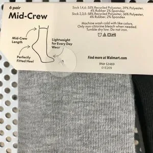 No Boundaries Women's Ribbed Mid Crew Socks, 6-Pack, Women's, Shoe Sizes 4-10