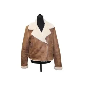 Forever 21 Faux Suede Shearling Aviator Jacket Women Size L EUC Brown Moto Biker