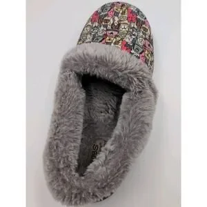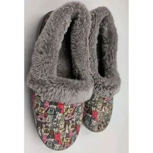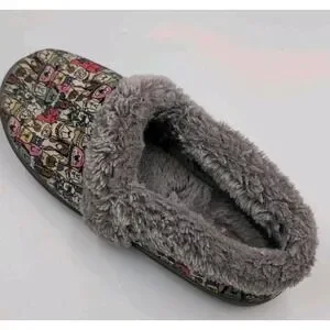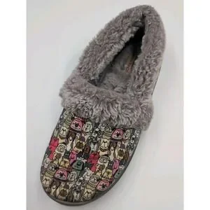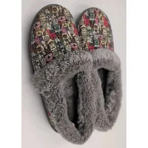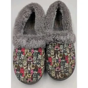 Skechers BOBS Slippers Women 7.5 Dog Print Faux Fur Lined Memory Foam Cozy