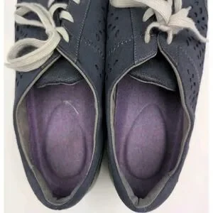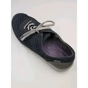The Rockport Women's Emalyn Tie Fashion Sneaker in Dusty Blue with a stylish metallic heel that is comfortable for everyday wear. This sneaker offers flexibility and lightweight shock absorption with its Eva footbed. With its fashionable look and comfortable features, this sneaker from Rockport is a great choice for any woman looking to add a pop of color to her outfit.