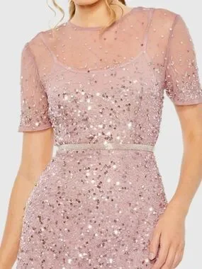 NWT Mac Duggal Sz 18 Rosewood Pink Sequin Gown 93909