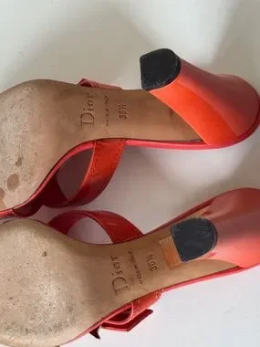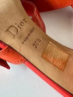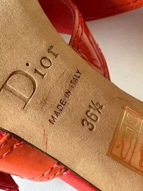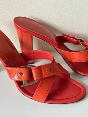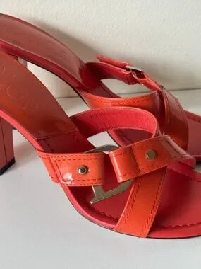Christian Dior Orange Patent Leather Sandals Mules Sandals Size 36.5 Made Italy