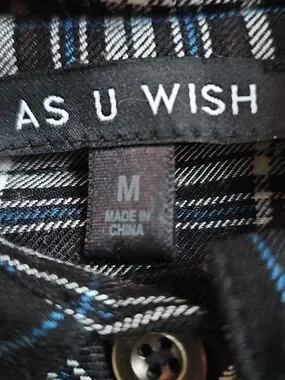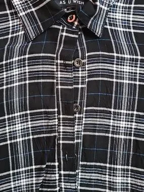 As U Wish Black and White Plaid Half Button-Down Dress