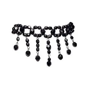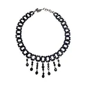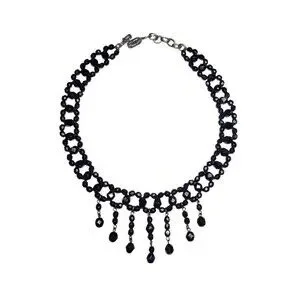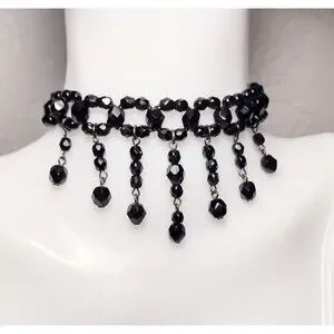 Goth Victorian Firenze Italy Black Glass Beaded Necklace Jean Andre