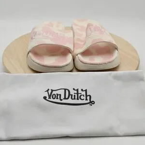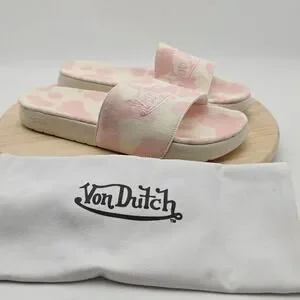 Von Dutch Slide Sandals Mens Size 12 Pink Cow Print Logo Slip On Shoes MSH5035