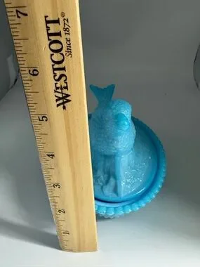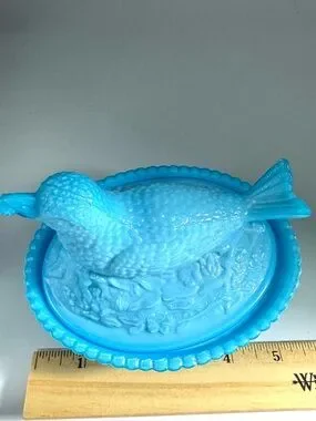 Vintage Bird on Nest Light Blue Milk Glass by Summit