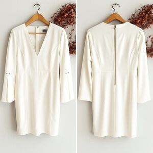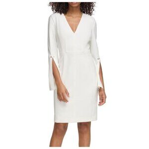 Tommy Hilfiger Women's Slit Sleeve Sheath Knee Length Dress Size 8 Off White