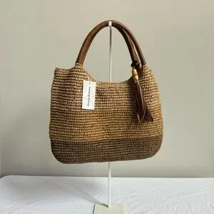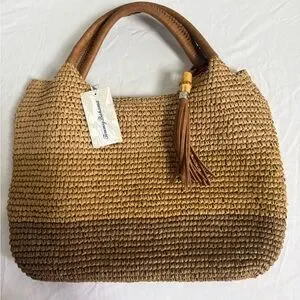 Tommy Bahama Brown Woven Straw Tote with Tassel