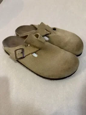 Birkenstocks Tan Suede Slip-On Clog Mules.