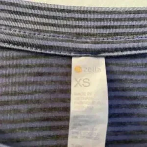 Zella Top. Size XS. Color is periwinkle blue and dark gray. Short sleeve gathering at waist. Great condition. See tag for material #359C P 18 1/2 L 20-21