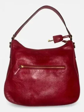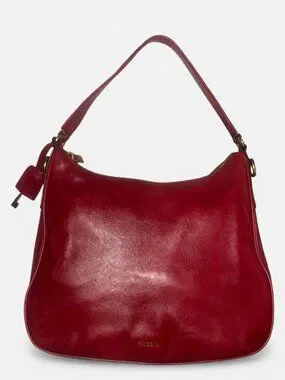 Fossil Memoir Hobo ZB5475 Regal Red All Leather Slouchy Shoulder Bag Key Charm