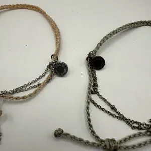 Pura Vida Green & Peach Woven Adjustable Bracelets Lot Of (2) with Chains
