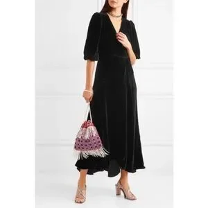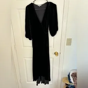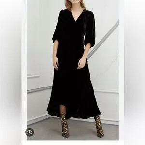 Keywords: elegant, silk, velvet, wrap dress, maxi dress, formal, winter wedding, chic, classic, timeless, goth, gothic, romantic