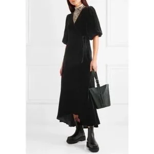 GANNI Aldine Silk Velvet Warp Dress in Black