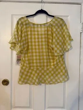 Nanette Lepore Yellow and White Gingham Button-Front Blouse