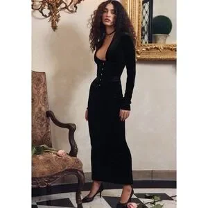 House of CB Arabella Black Velvet Corset Dress Romantic Victorian Goth Size S