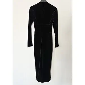 Arabella' is one of our most glamorous dresses. Cut from sumptuously soft plush stretch velvet in a timeless black hue, 'Arabella' keeps it elegant yet sexy in a flattering curve creating silhouette. It features a shawl collar with an open plunge neckline that reveals a hint of cleavage and the boned bodice cinches the waist, complete with corset hooks for a snatching fit.