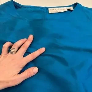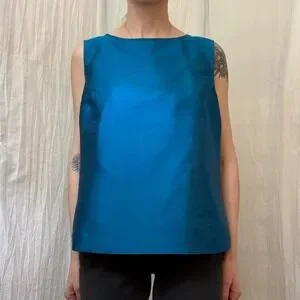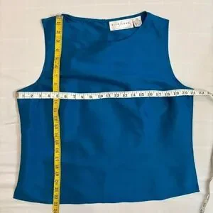 Electric Blue Silk Sleeveless Blouse VTG Y2K Silk Lore Beth Terrell M/L Fitted