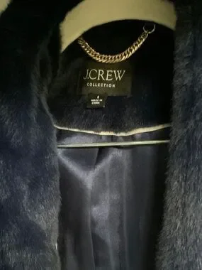 J. Crew Collection Deep Navy Faux Fur Long Coat