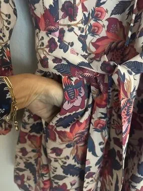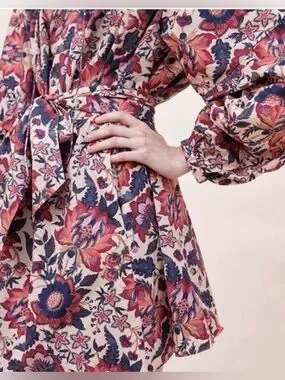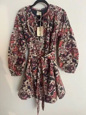 New with the tags CHUFY made with love inspired by my travels Gabi mini dress, absolutely gorgeous quality fabric belted tie at top lined with navy blue button cuffs pockets absolute quality retail $495 this dress is stunning size extra small Non Stretch beautiful