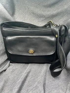 Coach Vintage Taft Black Leather Crossbody 9980 Bag with Brass-Tone Turn Lock