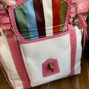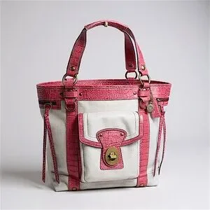 Coach RARE Exotic Legacy Pink Croc Embossed Trim Tote Y2K