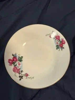 Elegant ceramic bowls with pink rose floral accents and a delicate gold rim. The white base and pink floral design add a classic, feminine touch to any table. Lightweight and decorative for everyday use or special occasions. No chips or cracks