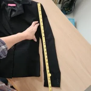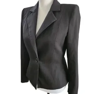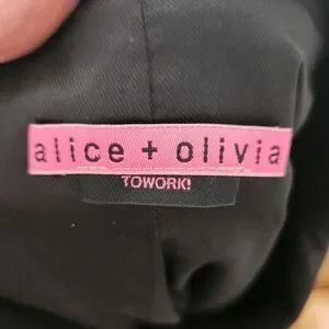 No size tag so please go by measurements Chic Alice and Olivia peplum blazer crafted in a flattering fitted silhouette. This sophisticated jacket features a single button closure and classic lapel design, perfect for adding a polished touch to any ensemble. The subtle peplum is adorable