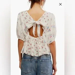 Free People White Floral Blouse
