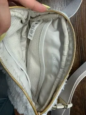 lululemon Cream Sherpa Crossbody Bag with Gold Zipper
