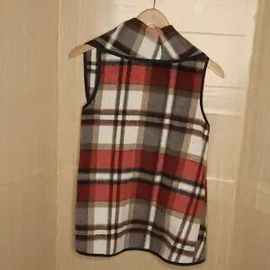 Altar’d State red tan navy wool feel vest medium. Gently used condition. Measurements are: 28 ½" from shoulder to shortest part of hem (measured in back where shortest).