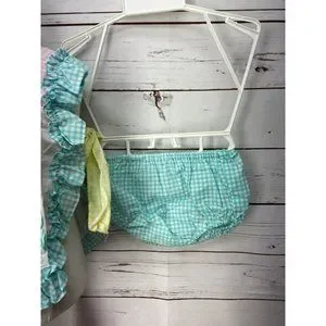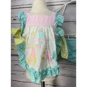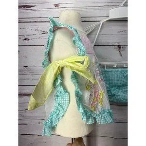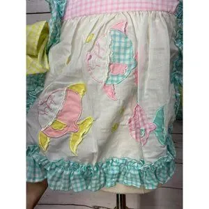 Broadway Kids Aqua Pink Gingham Smock Fish Tie Side Size 18 Months Two Piece Set