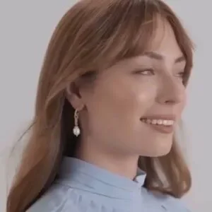 A simple gilded hoop becomes a glamorous drop earring, thanks to a beautifully elongated pearl charm that calls to mind the seaside paradise of Marbella, located along Spain’s famed Costa del Sol.