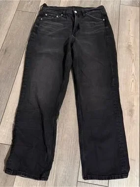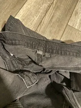 Women's American Eagle Super High Rise Ankle Straight Jeans Washed Black