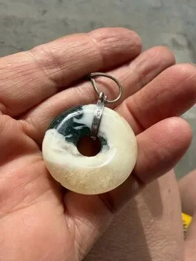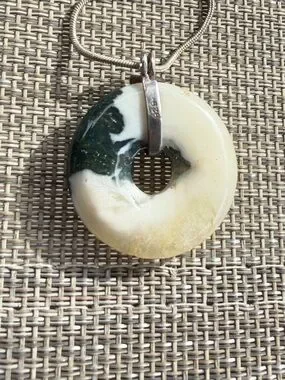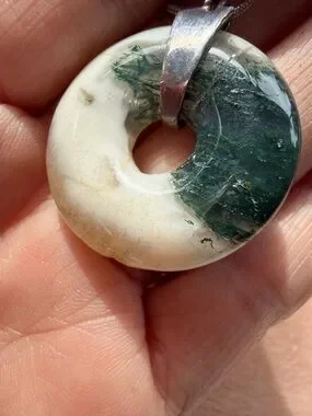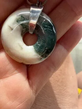 Green Moss Stone Pendant Necklace with 18” 925 chain 18”