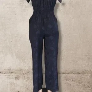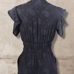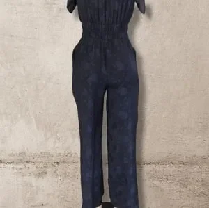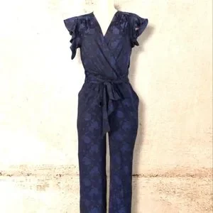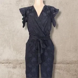Midnight Navy Floral Jacquard V-neck Wrap Jumpsuit XS