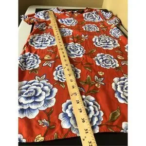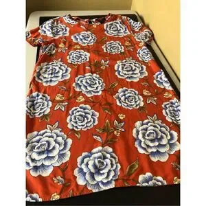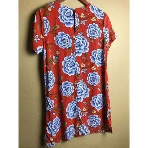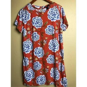 Forever 21 Tropical Women Size Medium Rust Floral Short Sleeve Button Back Dress