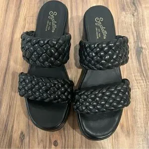 Anthropologie Seychelles Black Braided Platform Heeled Sandals