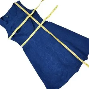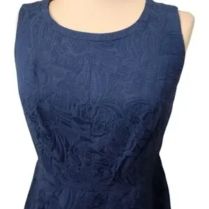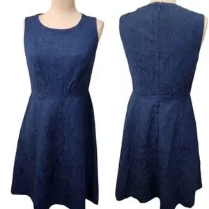 TALBOTS Navy Blue Jacquard Fit & Flare Sleeveless Dress