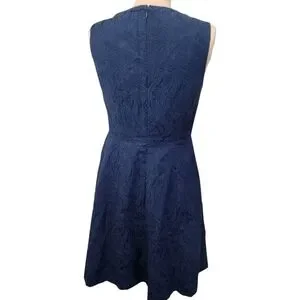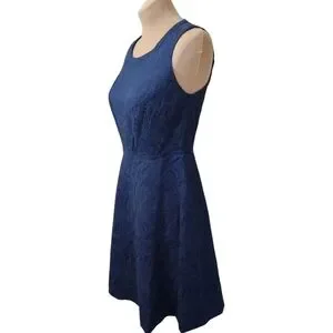 TALBOTS Navy Blue Jacquard Fit & Flare Sleeveless Dress - Size 4