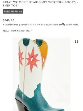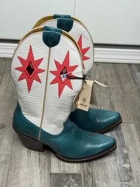 ARIAT WOMEN STARLIGHT WESTERN BOOTS - SNIP TOE TURQUOISE size 8 rodeo stagecoach